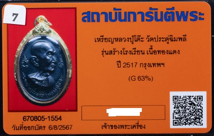 รายละเอียด เหรียญหลวงปู่โต๊ะ รุ่นสร้างโรงเรียน เนื้อทองแดง เลี่ยมทอง