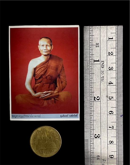 รูปภาพสี หลวงพ่อจรัญ ด้านหลังจานยันต์ มีหมายเลข ขนาดห้อยคอ