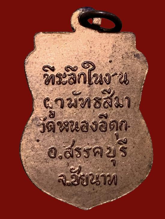 วัดหนองอีดุก นับเป็นวัดที่มีความผูกพันธ์กับหลวงพ่อมากพอสมควร ท่านได้อุปถัมน์มาตลอด พระที่ท่านสร้างเพื่อช่วยเหลือวัดนี้มีมากเเละหลายครั้ง โดยเหรียญพระพุทธชัยนาทได้จัดสร้างโดยหลวงพ่อเเสวงศิษย์หลวงพ่ออีกท่านนึง ในโอกาสฝังลูกนิมิตรพระอุโบสถของทางวัด ปีพ.ศ.๒๕๑๕ มีการจัดพิธีพุทธาภิเษก มีพระเกจิมาร่วมพิธีหลายรูป ที่สำคัญคือ หลวงพ่อกวย วัดบ้านเเค เเละหลวงพ่อมหาวีระ วัดท่าซุง หรือท่านหลวงพ่อฤาษีลิงดำ เหรียญนี้ หลังจากพิธีปลุกเสกใหม่ๆ พวกทหารที่มาในพิธี ได้นำเหรียญไปลองยิงที่หลังวัด ปรากฎว่า ทั้งยิงไม่ออกเเละไม่ถูก มีการลองกันหลายหน |