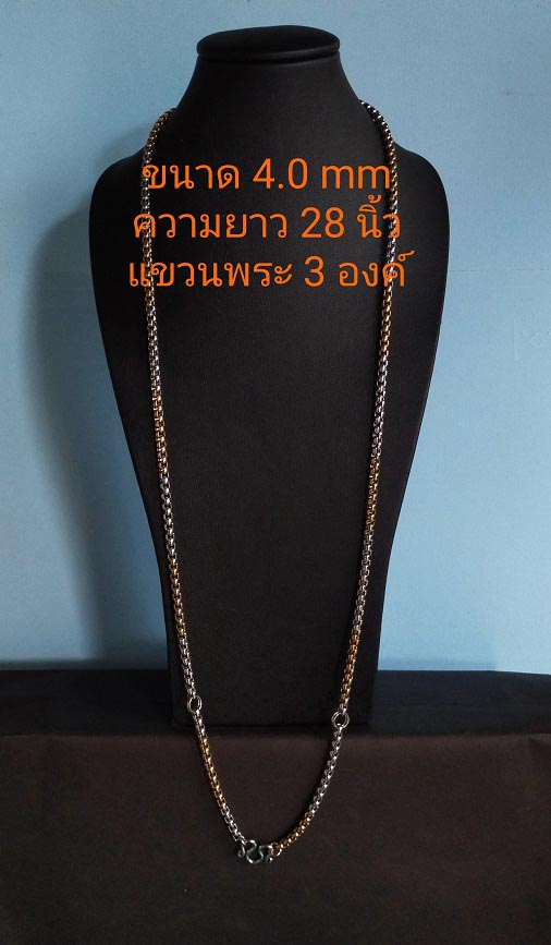 สร้อยลายผ่าหวาย 2 K หรือสองกษัตริย์ เเขวนพระ 3 องศ์ ขนาด 4.0 mm ยาว 28 นิ้ว |