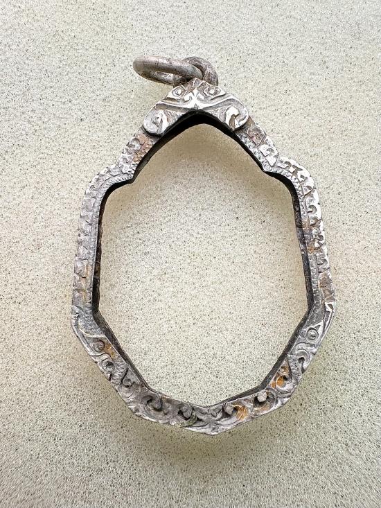 กรอบเงินแท้ ใส่มังกรคู่หลวงปู่หมุนได้ค่ะ น้ำหนัก 5.44 กรัม ขนาดวัดจากด้านในกรอบ มีรูปเพิ่มเติมด้านล่างค่ะ