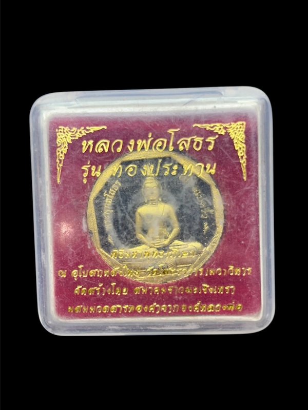 วัดใจ***พระหลวงพ่อโสธร รุ่นทองประทาน ปี 2550 พิมเล็ก ขนาด 3 ซ.ม. มีส่วนผสมของทองศักดิ์สิทธิ์ที่ปิดบนองค์หลวงพ่อองค์เก่าแต่โบราณนับร้อยปี เนื้อผงดำปัดทอง หมายเลข 398863 |