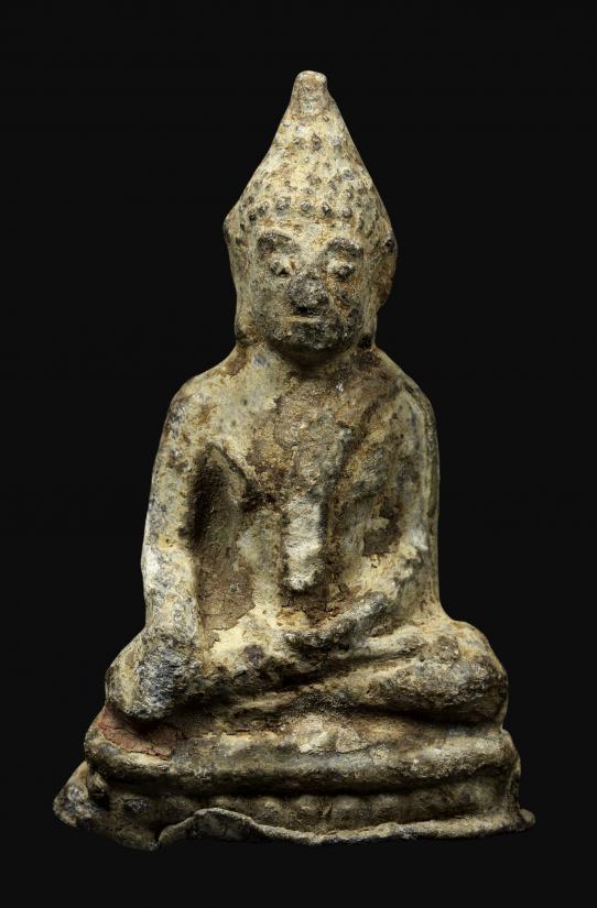 องค์นี้ค่อนข้างใหญ่สูงเกือบ 3 นิ้ว หน้าตัก 1 นิ้ว ผิว ออกสนิมไขปนแดง