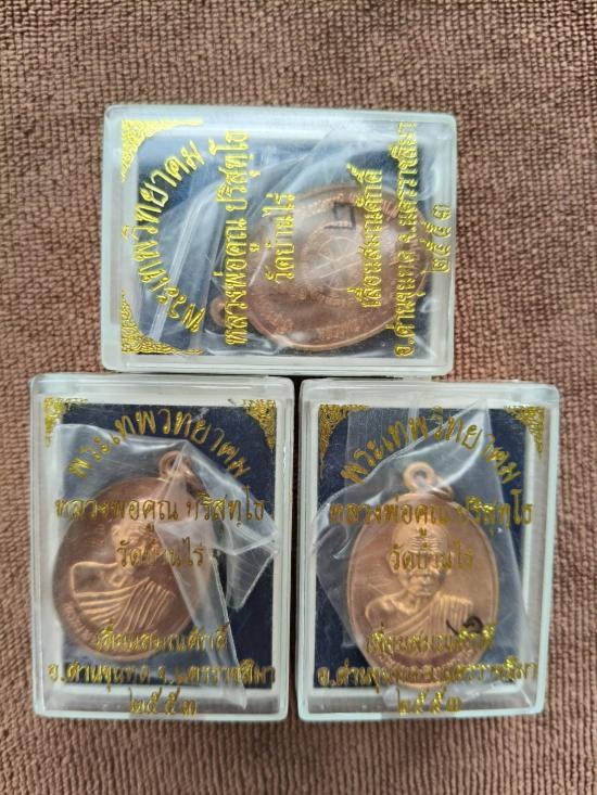 เหรียญเลื่อนสมณศักดิ์ หลวงพ่อคูณ ปี 53 เนื้อทองแดง 3 เหรียญ เคาะเดียวแดง พร้อมกล่องเดิม ...สวยๆ |