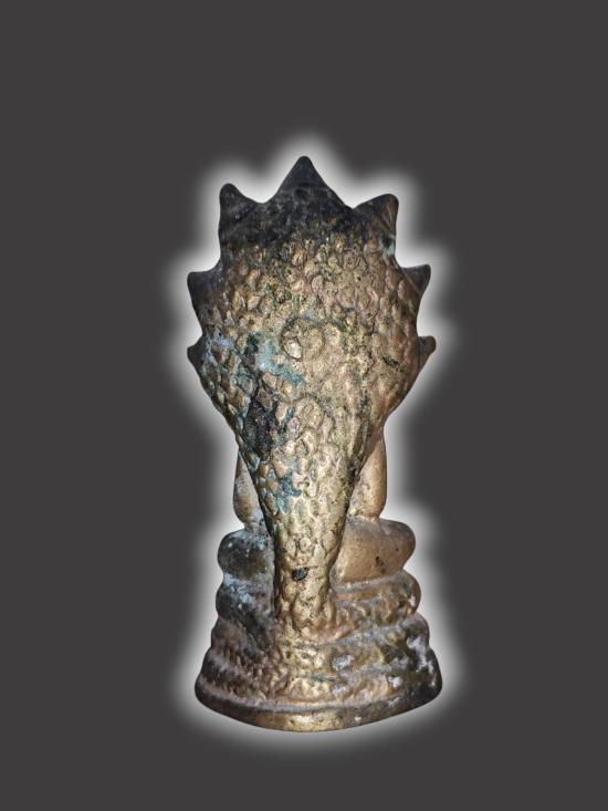 รายละเอียด A6203.พระบูชา หลวงพ่อนาคปรก เนื้อโลหะเก่า ไม่ทราบที่ เคาะเดียวเเดง หน้าตัก 1 นิ้ว สูง 2.8 นิ้ว เคาะเดียวเเดง
