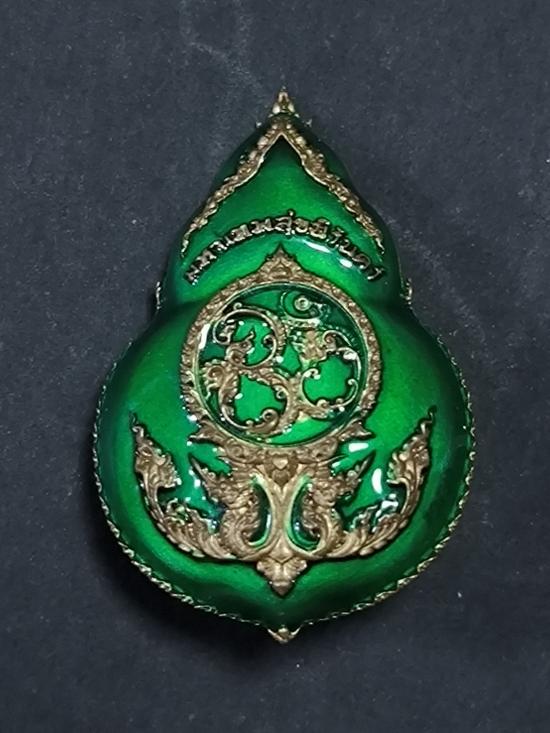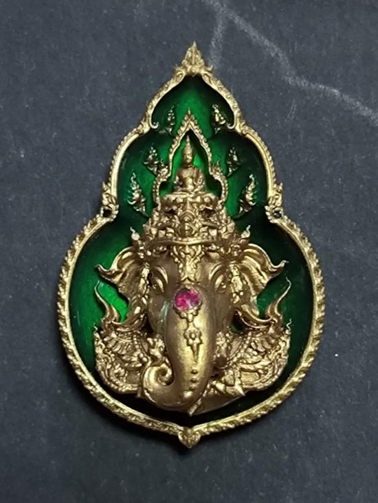 เคาะเดียวแดง ต่ำกว่าราคาจอง เหรียญพระพิฆเนศ รุ่นมหาเทพสุขนิรันดร์ เนื้อบรอนซ์ลงยาสีเขียว วันพุธกลางวัน ฝังพลอย พิมพ์เล็ก จำนวนการสร้าง 39 องค์ พร้อมกล่องเดิม เลขประจำองค์ 19