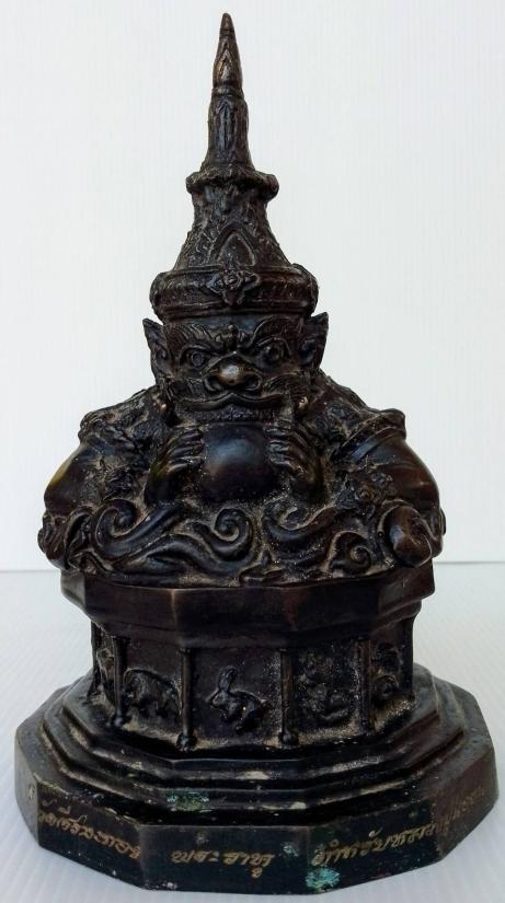 พระบูชาราหูอมจันทร์ วัดศีรษะทอง ตำรับหลวงปู่น้อย นาวารัตน์ พ.ศ. 2550 ขนาดฐานกว้าง 5 นิ้ว สูง 8 นิ้ว