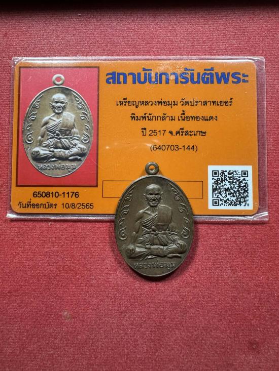 เหรียญหลวงพ่อมุมพร้อมบัตรรับรอง