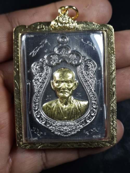 ชื่อพระเครื่อง เซียนแปะโรงสี รุ่น เจ้าสัว ทองพันล้าน หลวงพ่อทอง สุทธสีโล วัดบ้านไร่ เนื้อตะกั่วนำฤกษ์ หน้ากากทองระฆังไม่ตัดปีกตอก9รอบ มีจารหน้าหลัง