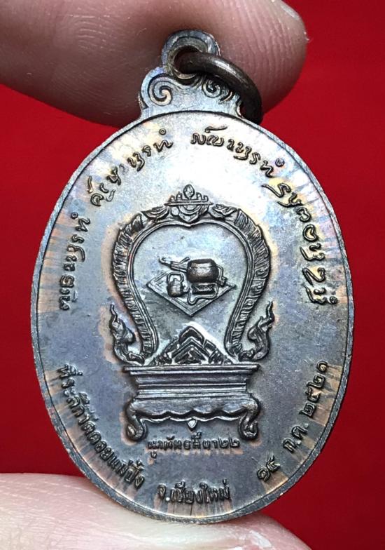เหรียญที่ระลึกผูกพัทธสีมา หลวงปู่แหวน วัดดอยแม่ปั๋ง ปี 2521 พิมพ์ใหญ่ เนื้อทองแดงผิวรุ้ง