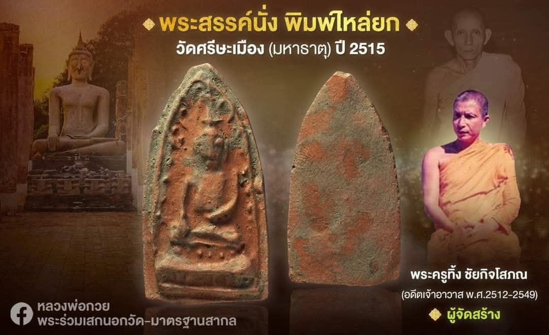 พระสรรค์นั่ง หลวงพ่อกวย เนื้อดิน วัดโฆสิตาราม ออกวัดศรีษะเมือง ปี 2515 จ.ชัยนาท |