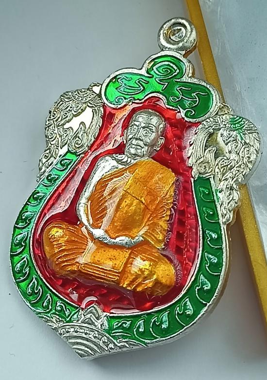 เหรียญเสมา "รวยสมใจนึก" หลวงพ่อพัฒน์ วัดห้วยด้วน เนื้อเงินลงยาขุ้ยพื้น เบอร์ 130 พร้อมกล่องเดิมครับ (เหรียญหนัก 17.79 กรัม) |
