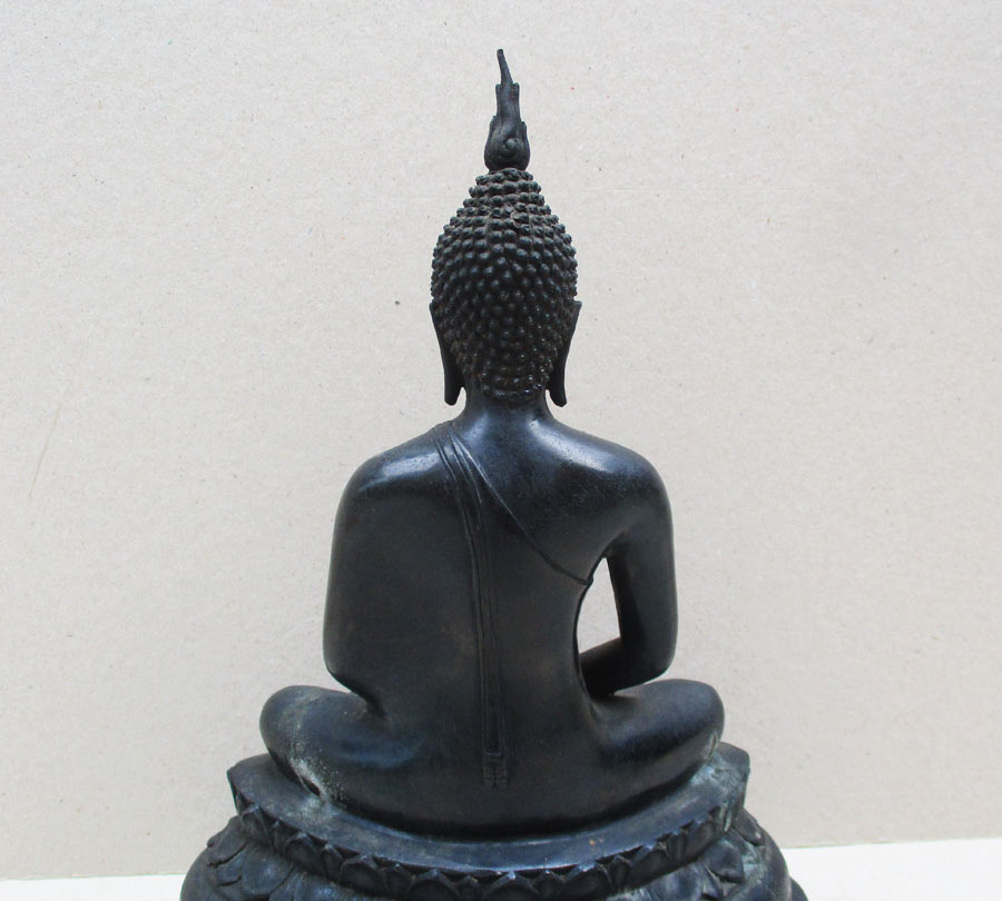 พระบูชาปางสมาธิ อนุสรณ์ 20 พรรษาพระมหาชุม เขมงฺโร วัดธาตุทอง พ.ศ.2519 เนื้อโลหะรมดำมันปูผิวแห้งหิ้ง !! |