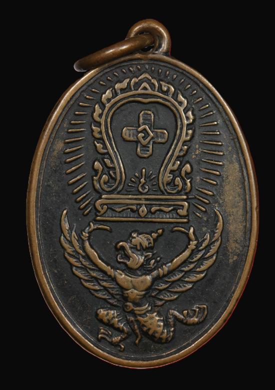 เหรียญครุฑแบกเสมา หลวงพ่อโอภาสี พ.ศ. 2498
