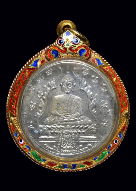 เหรียญพระเเก้วมรกต.ปี2475วัดพระศรี,พิมพ์ฮั้งเตี้ยนเซ้ง.เลี่ยมทองลงยา