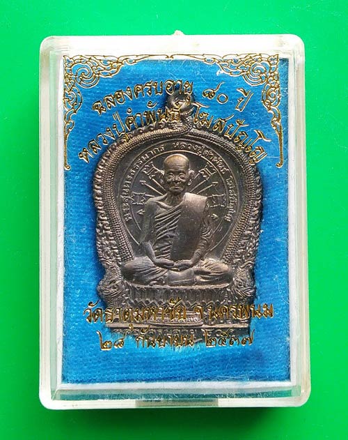 ชื่อพระเครื่อง หลวงปู่คำพันธ์ โฆสปัญโญ รุ่นอภิมหาทรัพย์ เนื้อนวโลหะ หมายเลข 4313 + กล่องเดิม