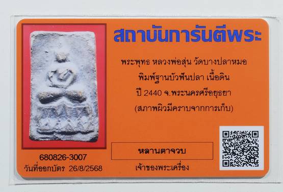 พระเนื้อดินฐานบัวฟันปลา หลวงพ่อสุ่น วัดบางปลาหมอ (พระอาจารย์ของหลวงพ่อปาน วัดบางนมโค) ปี2440 พิมพ์หายาก มีจารครับ