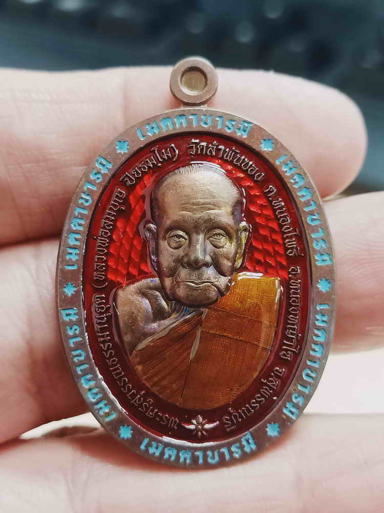 วัดใจ 100 เหรียญเมตตาบารมี หลวงพ่อสมบุญ วัดลำพันบอง จ.สุพรรณบุรี ปี 2566 ชนวนผิวรุ้ง ลงยาแดง พื้น ขอบ หมายเลข 5 กล่องเดิม***สายสุพรรณดันดี |