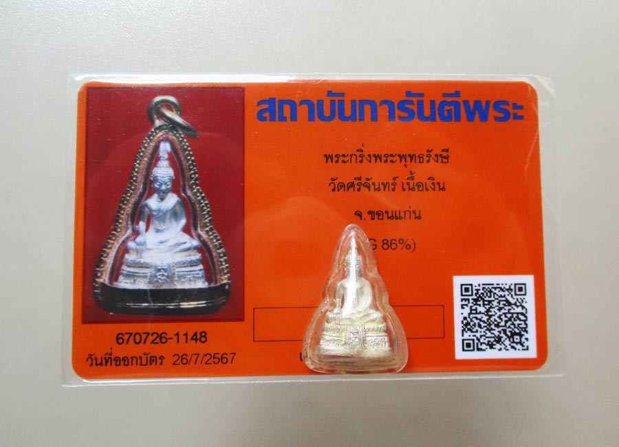 พระกริ่งพระพุทธรังษี วัดศรีจันทร์ จ.ขอนแก่น เนื้อเงิน บรรจุเม็ดกริ่ง พร้อมบัตรการันตีพระ |