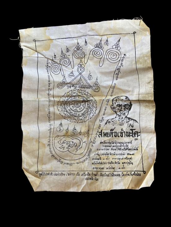 ผ้ายันต์เก่า ลายยันต์พื้นบ้าน พิมพ์หมึกเดิมบนผ้า สภาพตามอายุ มีคราบเก่าและรอยพับจากการเก็บใช้งานจริง ลวดลายยันต์ยังพอมองเห็นได้ชัด ไม่ผ่านการล้างหรือปรับสภาพ เหมาะสำหรับสายเครื่องรางผ้า หรือผู้ที่สะสมผ้ายันต์เก่าไว้ศึกษาและบูชา