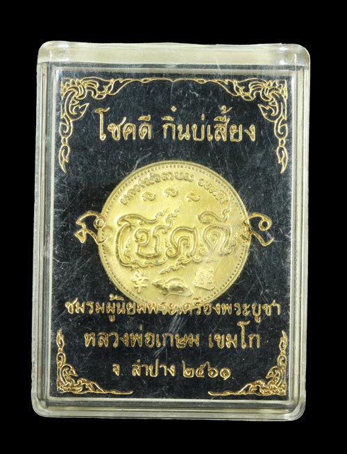 เหรียญโชคดี กินบ๋เสี้ยง เนื้อทองทิพย์ เหรียญที่ระลึกชมรมผู้นิยมพระเครื่อง พระบูชา พ.ศ.2561 สวย พร้อมกล่อง |