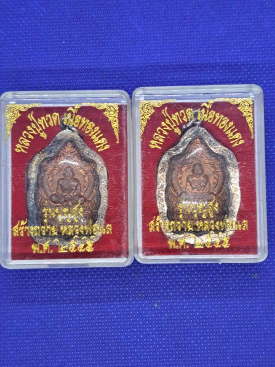 หลวงปู่ทวด เนื้อทองแดง รุ่นบุญสูง หลวงพ่อแล วัดพระทรง จ.เพชรบุรี พ.ศ.2545 เลี่ยมกรอบไมครอนพร้อมใช้จากวัด เคาะเดียวแดง 2 องค์ |