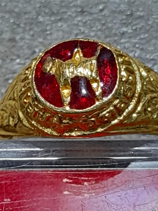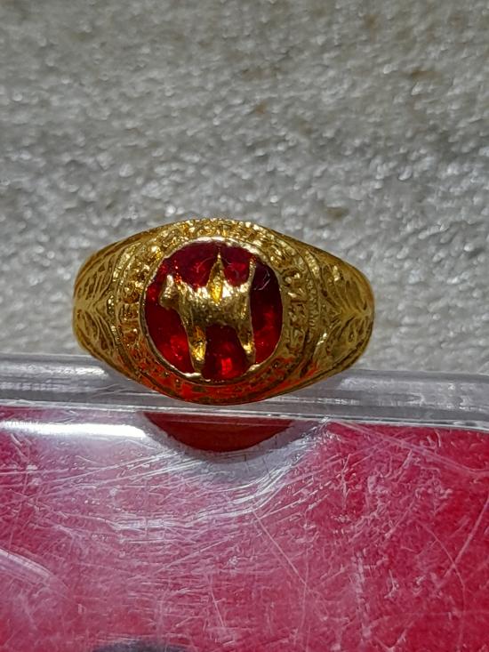 วัดใจเคาะเดียว.............แหวนผู้หญิง กะไหล่ทองลงยาสีแดง หลวงปู่เย็น ทานรโต วัดการเปรียญ วัดสระเปรียญ สวยๆ หายาก |