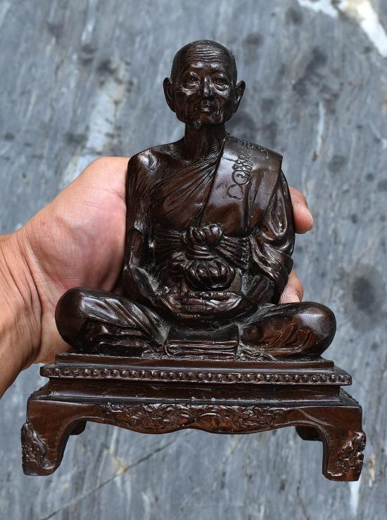 พระรูปเหมือนขนาดบูชา หลวงพ่อหยอด วัดแก้วเจริญ จ.สมุทรสงคราม เนื้อโลหะ ใต้ฐานบรรจุวัตถุมงคล พระบ้าน ผิวหิ้ง |