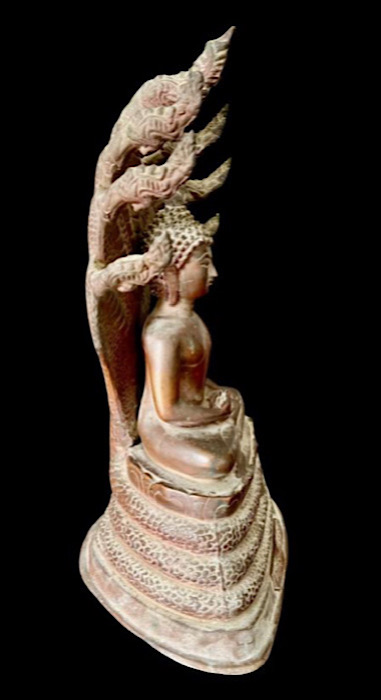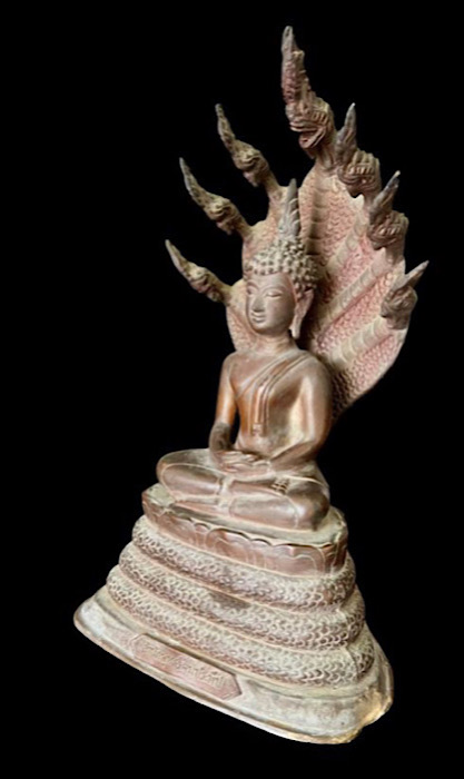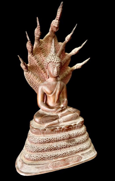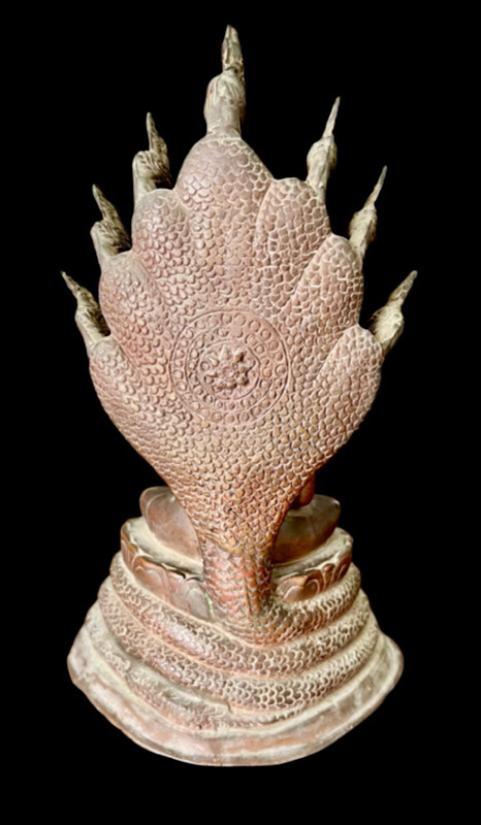 พระบูชาปางพระนาคปรก พิธี 25 ศตวรรษ สำนักพุทธรัตนประทีป เนื้อโลหะผิวสีแดงมันเทศ ถึงยุค หล่อหนา ก้นดินไทยสวยๆ ใต้ฐานปิดทับด้วยปูน ผิวเดิม หิ้งสุดๆ สวยมากๆ |