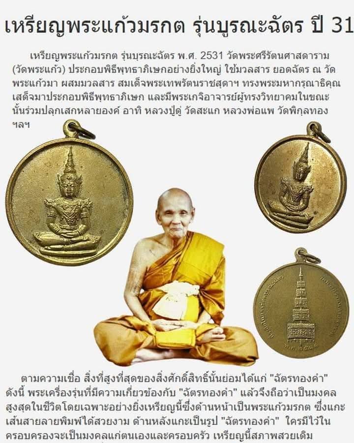 เหรียญ พระแก้วมรกต รุ่นบูรณะฉัตร ปี 2531....ปลุกเสกโดย หลวงปู่ดู่ วัดสะแก |