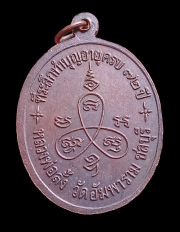 เหรียญพระครูสาธกธรรมคุณ(หลวงพ่อลั้ง)วัดอัมพาราม อ.สัตหีบ ชลบุรี เนื้อทองแดงมีจาร