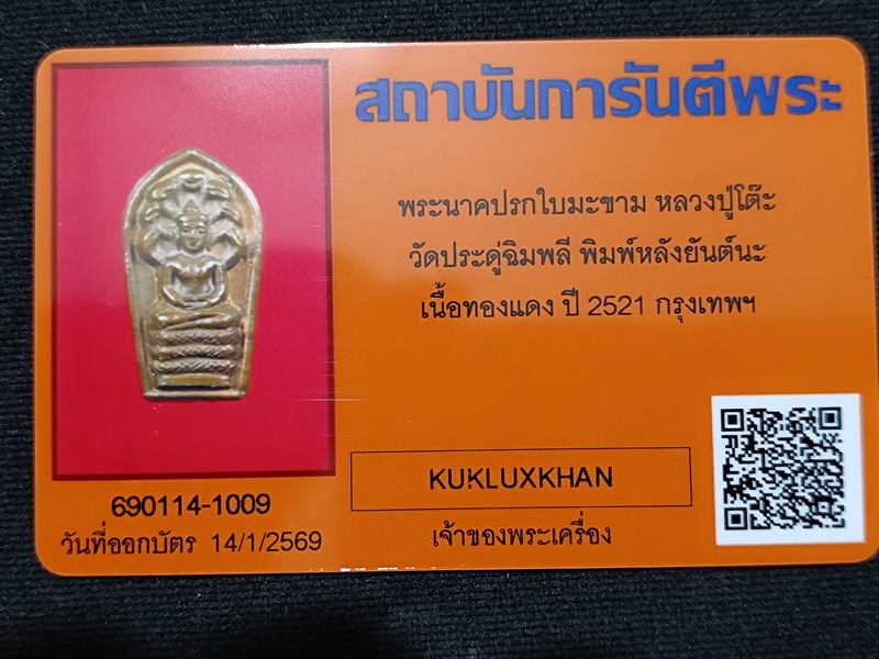 รายละเอียด พระนาคปรก หลวงปู่โต๊ะ หลังยันต์นะ ปี 2521 พร้อมบัตรรับรอง