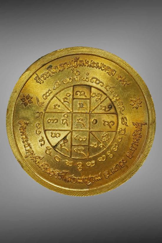 //เคาะแดง//เหรียญทำน้ำมนต์ มหามนต์ หมื่นศิลา หลวงปู่มหาศิลา สิริจันโท จ.กาฬสินธุ์ เนื้อทองแดงชุบทอง หมายเลข๘๖๒ พร้อมกล่องเดิมครับ |