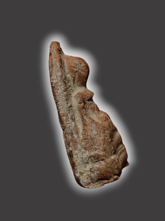 A6304.พระเนื้อดิน พิมพ์พระรอด ไม่ทราบที่ เคาะเดียวเเดง |