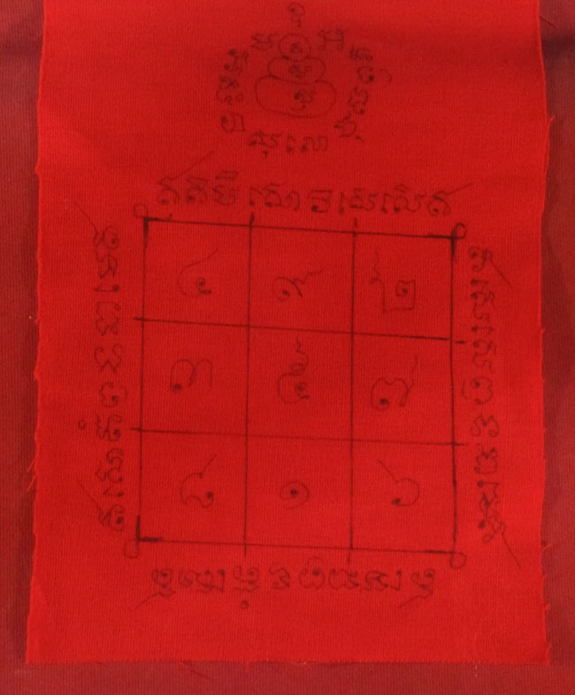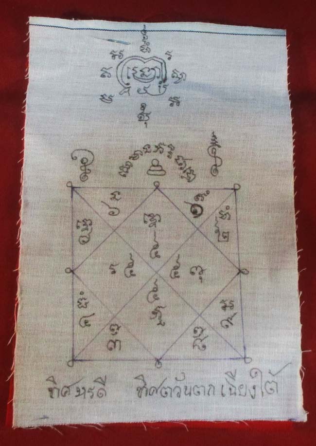 ผ้ายันต์ ไม่ทราบที่ จารยันต์ด้วยมือ ครับ