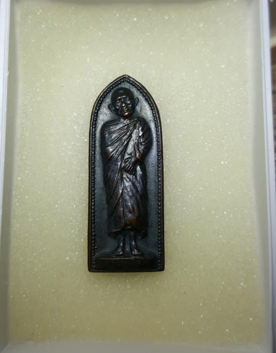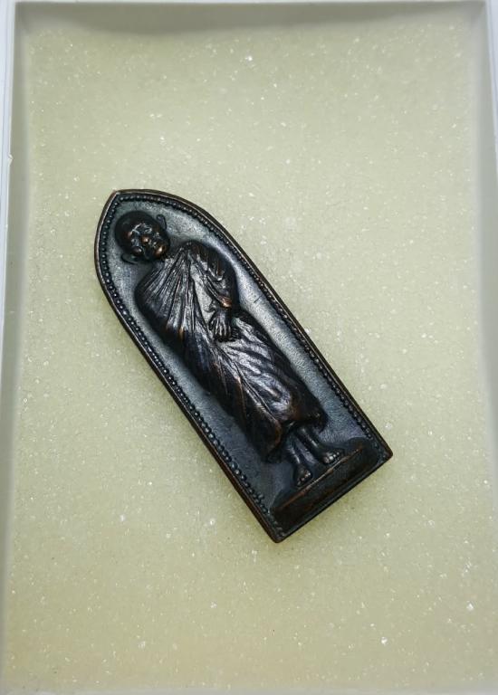 เหรียญยืนหลังรางปืน หลวงปู่แหวน สุจินโน วัดดอยแม่ปั๋ง จ.เชียงใหม่ พ.ศ. 2517 เนื้อทองแดงรมดำ |