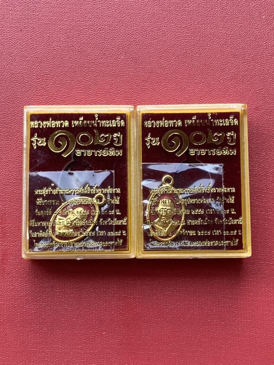 เคาะเดียวแดง เม็ดแตง 2องค์หลวงปู่ทวด รุ่น102ปีอาจารย์ทิม เนื้อชุบทองลงยาสีแดง |