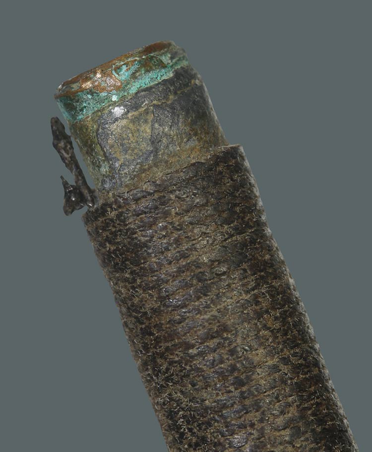 วัดใจ**เครื่องราง ตะกรุดถักเชือกลงรักเก่า เนื้อสองกษัตริย์ ตะกั่ว+ทองแดง ยาว 2.5นิ้ว.....ตามสภาพครับ
