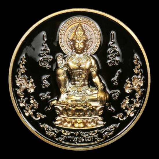 เหรียญบรมครูตาขุนโหร หลักเมือง ๖๘ รุ่น "พ่อให้รวย" นครศรีธรรมราช จัดสร้างโดย หมึก ท่าพระจันทร์ เนื้อสัมฤทธิ์ลงยาดำ หมายเลข ๙๑๘ พร้อมกล่องเดิม ปลุกเสก ๔ วาระ พิธีใหญ่แห่งปี เกจิดังทั่วประเทศร่วมปลุกเสก |