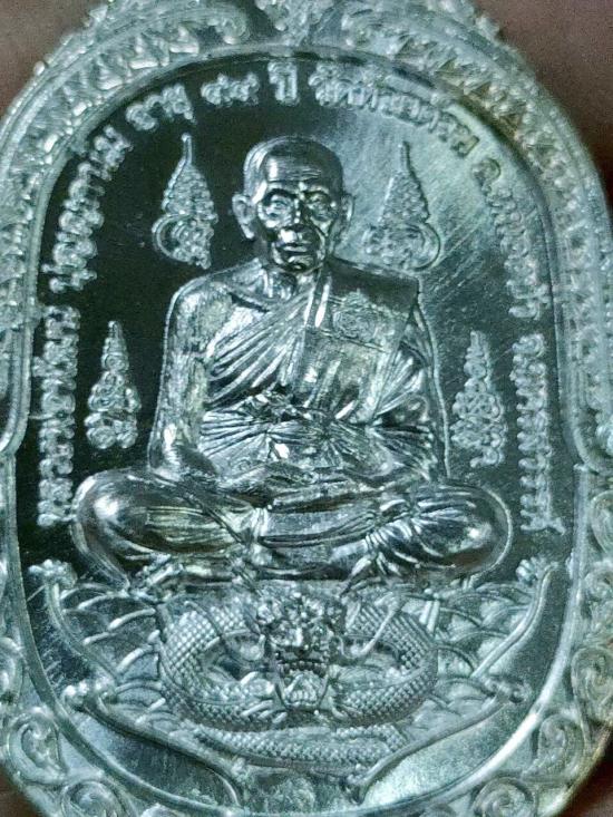 เหรียญนั่งมังกร หลวงพ่อพัฒน์ วัดห้วด้วน จ.นครสวรรค์ รุ่นมหาอำนาจ 99 ปี 2563 เนื้อเงิน ตอกโค๊ต พ ตอกโค๊ต รวย ตอกหมายเลข 7