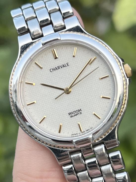 ชื่อพระเครื่อง +++HOT!!! สวยแชมป์!!! ยอดนิยม!!! Ricoh Charvale J-505-584-01 Two Tone Textured Dial Quartz ห้ามพลาดนะครับ!!!+++