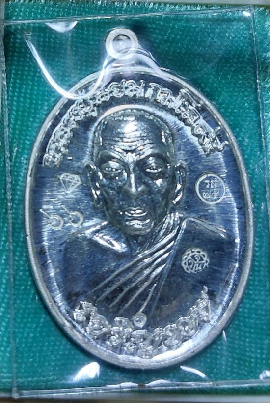เหรียญเจริญพรเมตตามหานิยม หลวงปู่นิยม กมโล ๙๔ ปี เนื้อเงิน เลขเบิล ๖๖ วัดแจ้งนอก ปี 2555