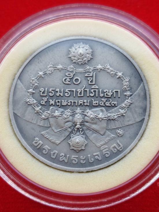 รายละเอียด เหรียญที่ระลึก 50 ปี บรมราชาภิเษก ปี 2543 เนื้อเงินรมดำพ่นทราย