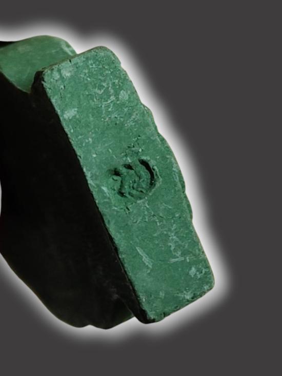 A6314.ท้าวเวสสุวรรณ เนื้อผงเขียว หลวงปู่โสฬส วัดโคกอู่ หลังลายนิ้วมือ ก้นมีโค๊ต เคาะเดียวเเดง |