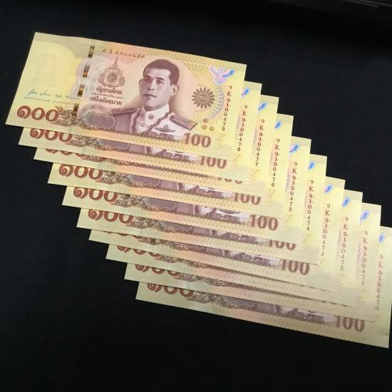 10 ฉบับแบงค์ 100 ที่ระลีก บรมราชาภิเษก รัชกาลที่ 10 เลขเรียง