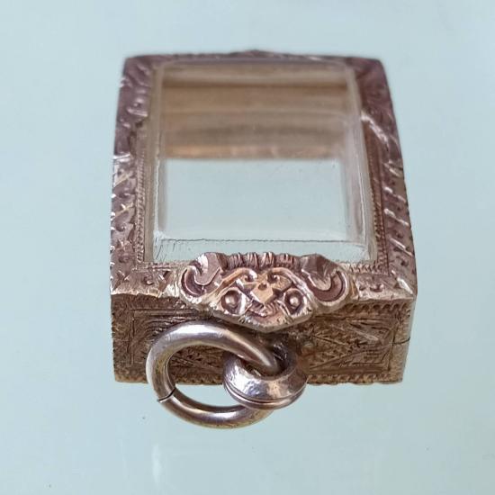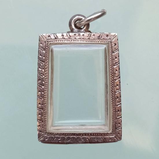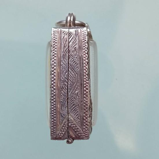 แดงเคาะแรก ตลับเงินแท้มือ2 เดิมใส่พระคำข้าว กระจก 1.8×2.6 เซนติเมตร