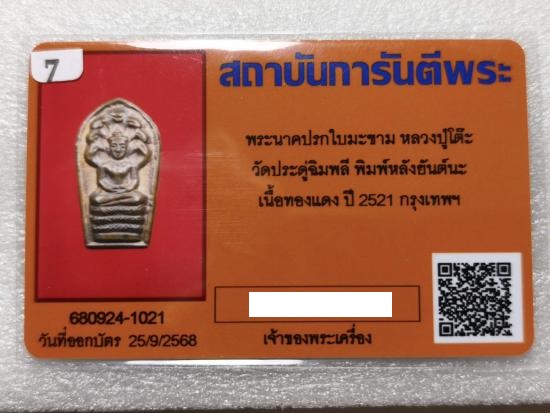 ชื่อพระเครื่อง พระนาคปรก หลวงปู่โต๊ะ หลังยันต์นะ ปี 2521