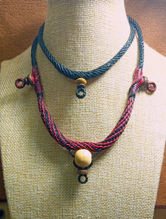 สร้อยคอเชือกเทียน งานถักมือ ( สีดำ-แดงเข้ม + แซมลูกปัดไม้ธรรมชาติ ห้อยพระ 3 องค์+หลัง 1 องค์ ) ยาว24 นิ้ว ครับ |