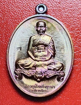 เหรียญนั่่งโต๊ะเต็มองค์เนื้อทองแดง