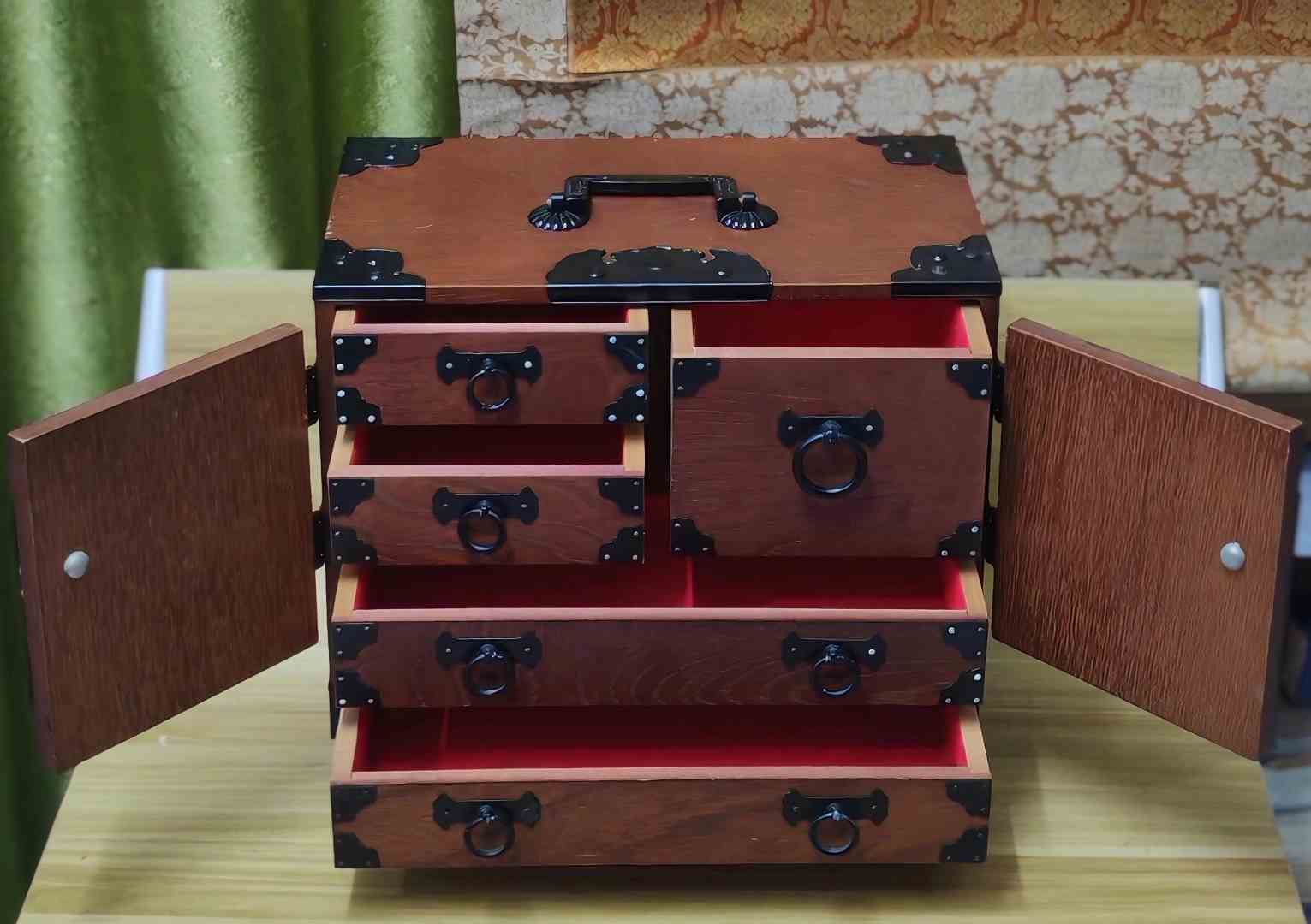 รายละเอียด กล่องลิ้นชัก ญี่ปุ่น งานปราณีต ไม้เนื้อแข็งฝังหมุดประดับลวดลายโลหะ ขนาดใหญ่ยาว 32เซนติเมตร